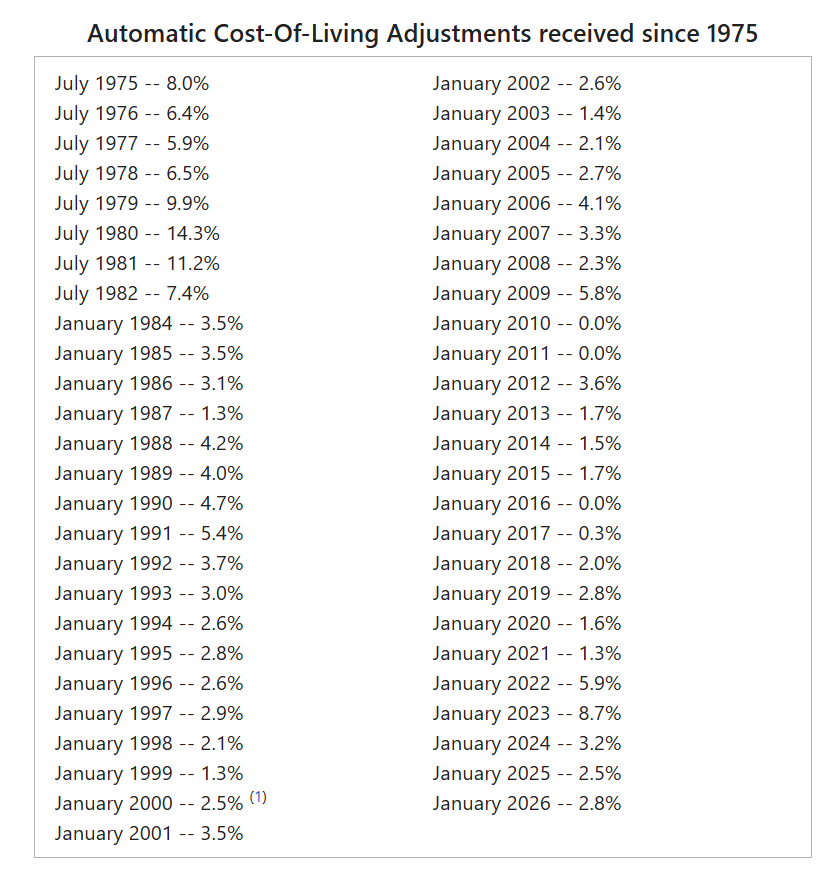 Although to some of us it may seem as if Social Security has always been around, that isn’t the case. The Social Security Act was signed into law by President Franklin D. Roosevelt on August 14, 1935. Its aim was to address the economic hardships of the Great Depression and provide an income source, specifically for the elderly. But automatic cost-of-living adjustments weren’t a part of the beginning stages. Prior to 1975, Congress had to enact special legislation to increase Social Security benefits. However, soaring inflation in the 1970s led Congress to allow automatic Social Security adjustments, tying them to the Consumer Price Index (CPI-W) to keep pace with inflation’s eroding effects. Congress enacted the Cost-of-Living Adjustment (COLA) provision as part of the 1972 Social Security Amendments, and in 1975, the first automatic Social Security COLA went into effect.